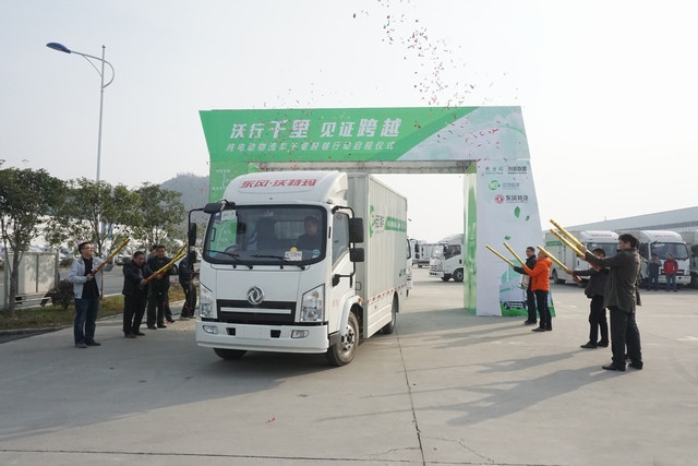 2017年11月28日,我公司與東風特汽(十堰)專用車有限公司生產(chǎn)的3T純電動廂式物流車首個千里跨越行動從公司十堰基地出發(fā)。3000輛東風·沃特瑪純電動物流車將陸續(xù)從十堰出發(fā)一路北上,穿越湖北、河南、山西,最終抵達內(nèi)蒙古呼和浩特市,總行程達1173公里。這在行駛距離、跨省區(qū)數(shù)量、車輛規(guī)模以及全程充維等各方面,都屬國內(nèi)新能源汽車領(lǐng)域的壯舉。這也標志著國內(nèi)首條千公里以上電動車干線充電線路建成并投入運行,讓1000公里以上的純電動物流車干線運輸成為現(xiàn)實,為電動物流車在全國范圍內(nèi)應用推廣打下堅實基礎。