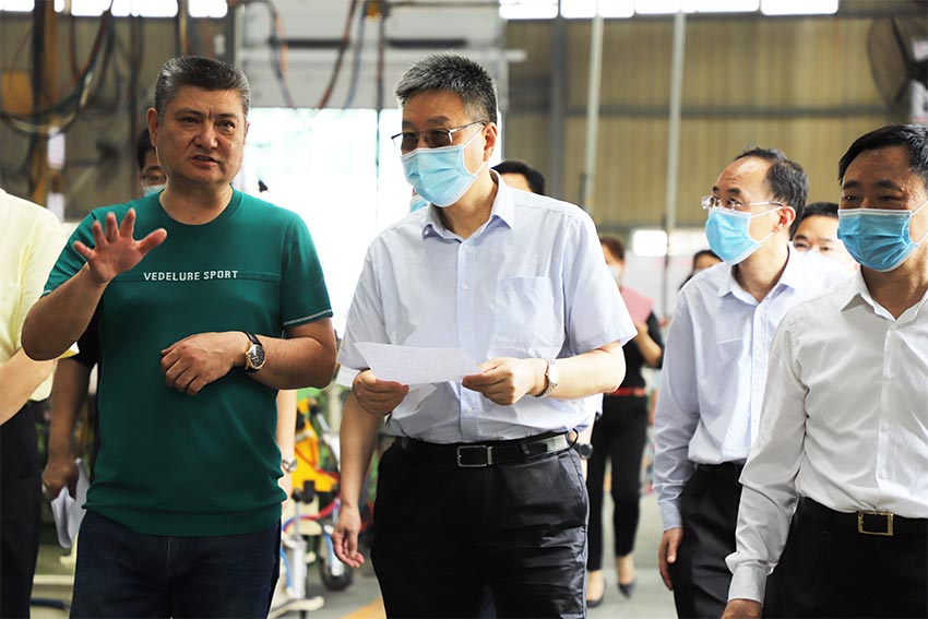 6月23日上午,湖北省人大常委會委員、監(jiān)察和司法委員會主任委員張紹明、湖北省人大常委會委員、監(jiān)察和司法委員會副主任委員夏志斌、聶利軍,十堰市人大常委會黨組副書記、副主任劉學(xué)華、市人大監(jiān)察司法委員會主任委員葉立成、茅箭區(qū)人大常委會副主任蘇立梅、副區(qū)長李炎濤等領(lǐng)導(dǎo)一行蒞臨正和汽車科技(十堰)股份有限公司(以下簡稱“正和汽車科技公司”)就優(yōu)化企業(yè)營商環(huán)境工作做專題調(diào)研。