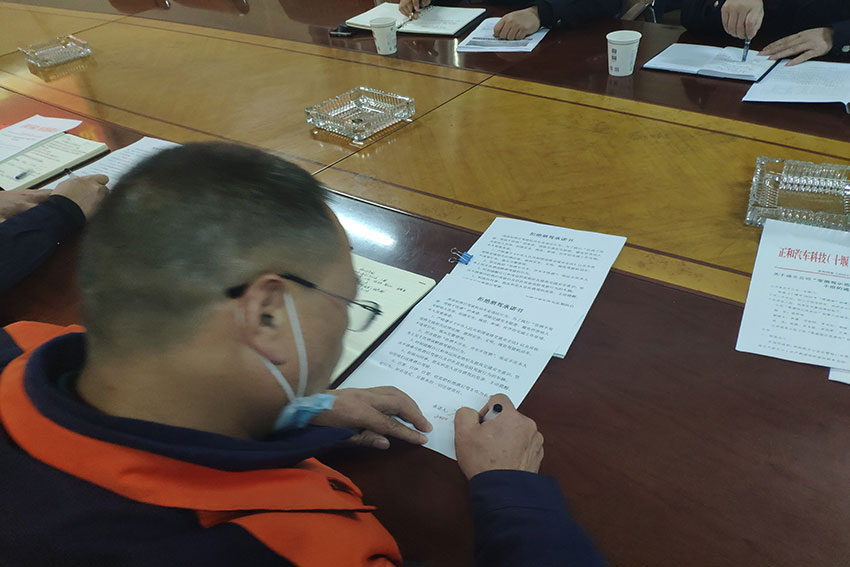 公司員工現(xiàn)場簽訂《拒絕酒駕承諾書》。