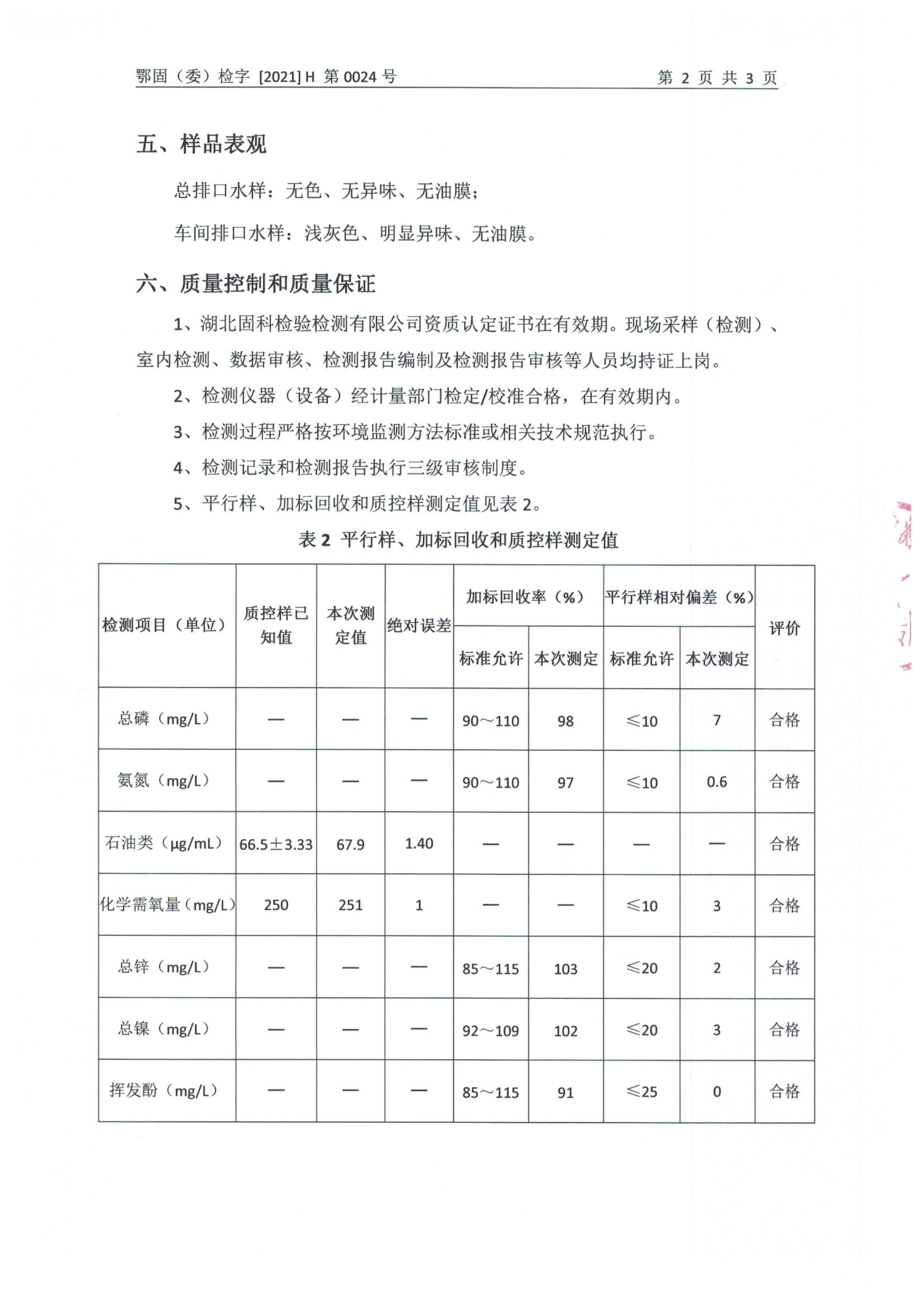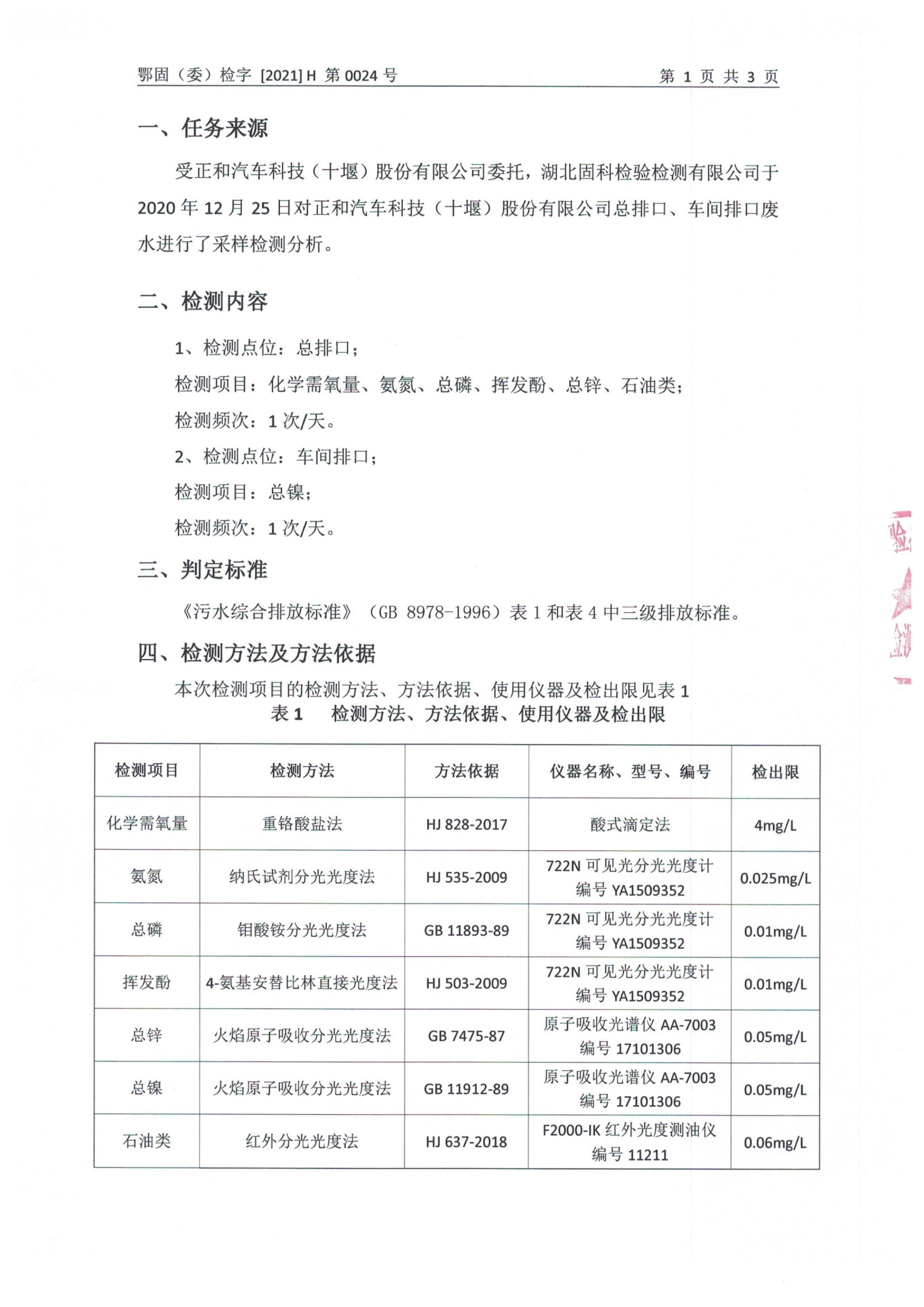 正和汽車2021年1月污水檢測(cè)報(bào)告