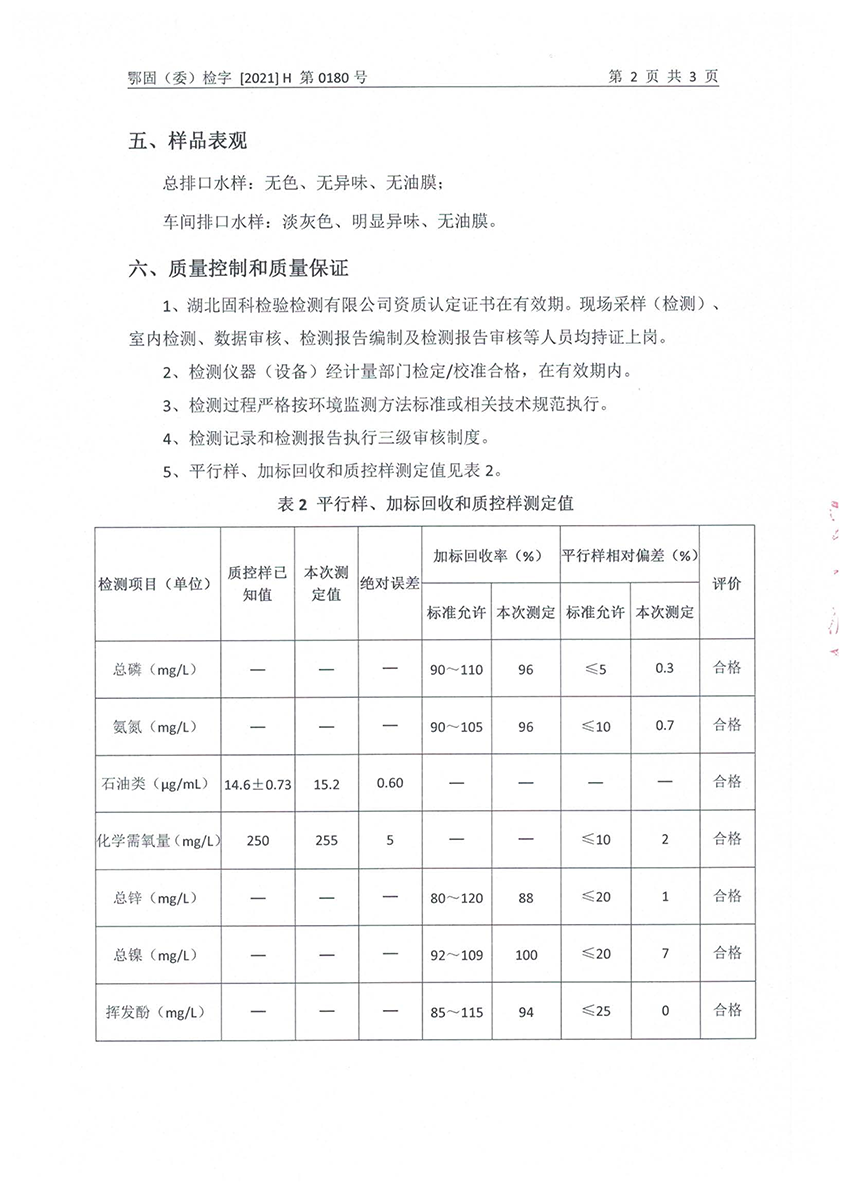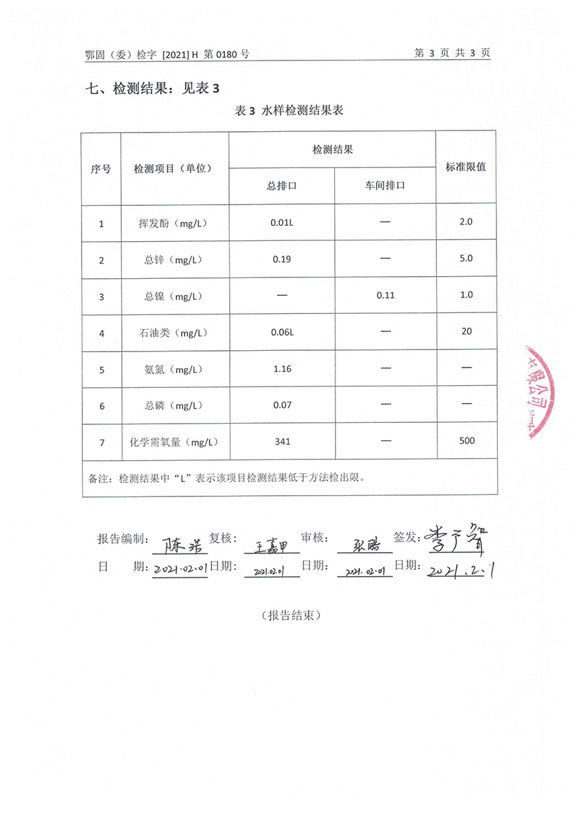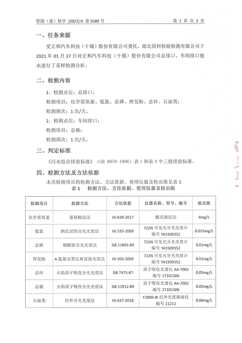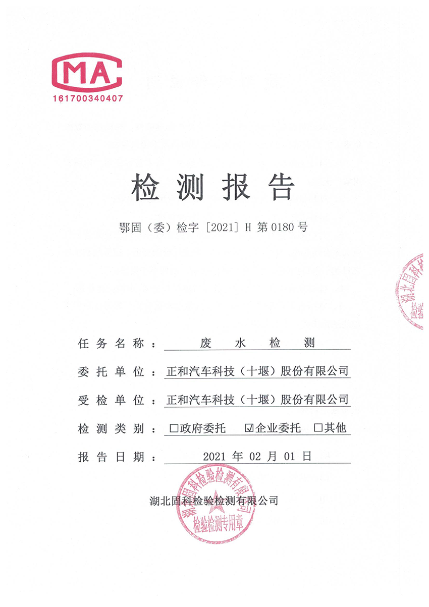 正和汽車2021年2月污水檢測(cè)報(bào)告