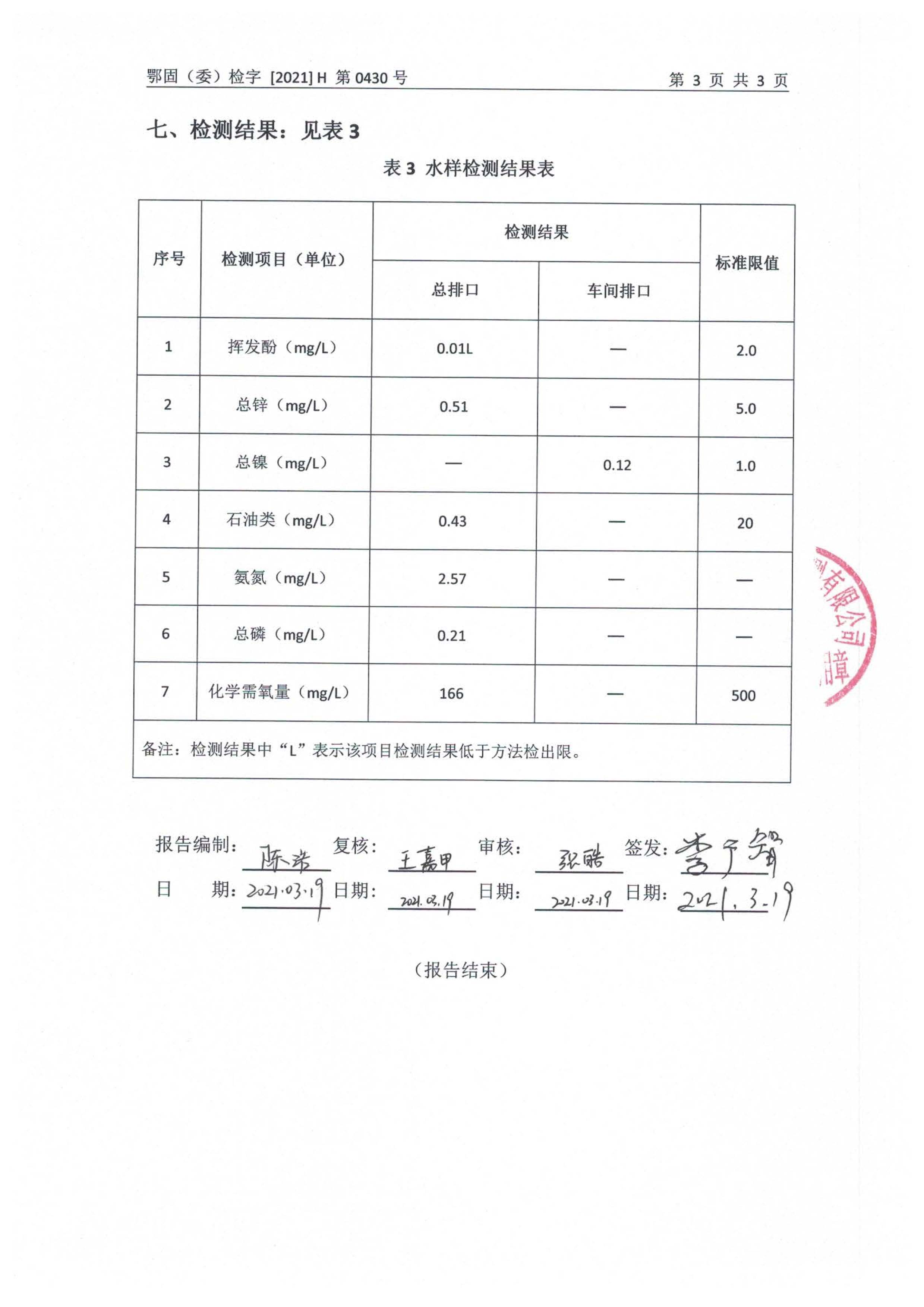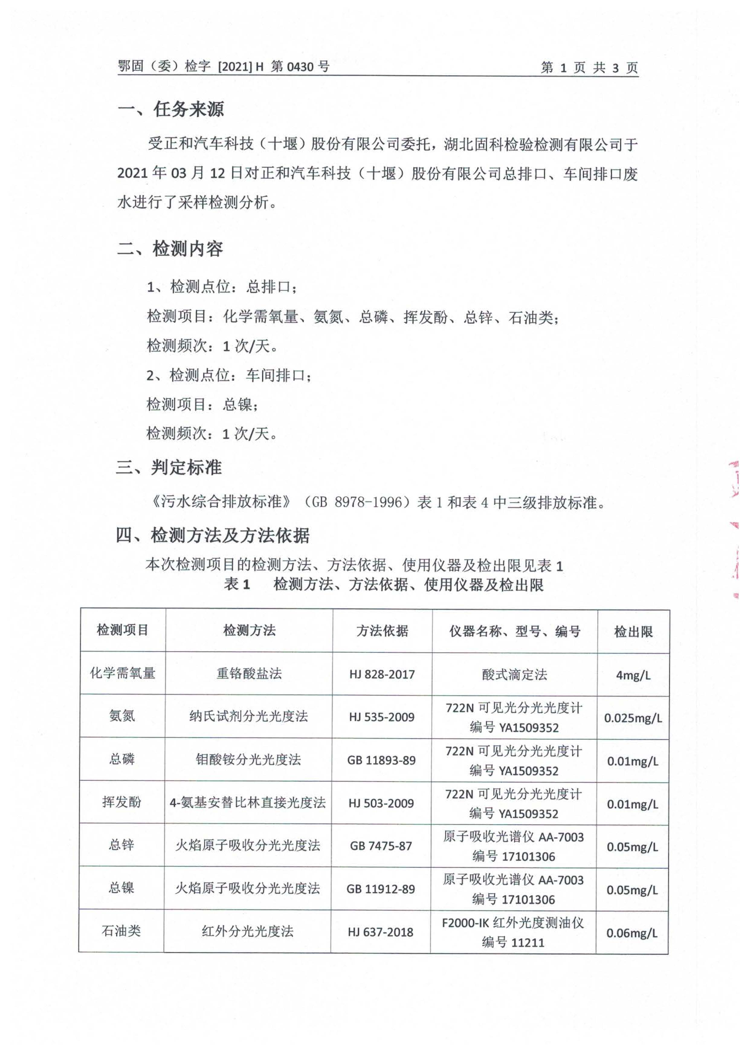 正和汽車2021年3月污水檢測(cè)報(bào)告